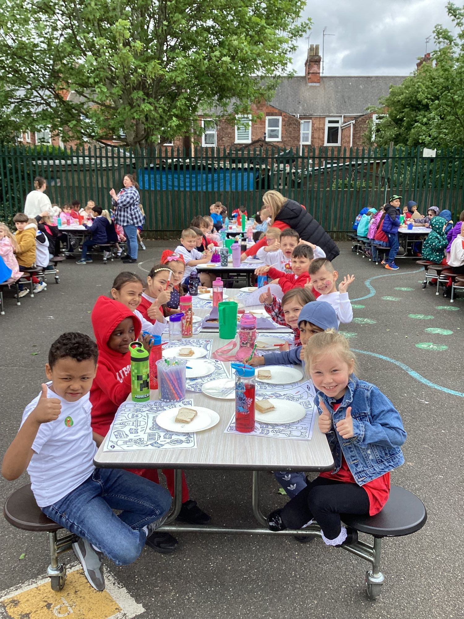 Our children had a lovely VE day to celebrate 80 years. The children got dressed up in red, white and blue clothing and had a little tea party to celebrate.