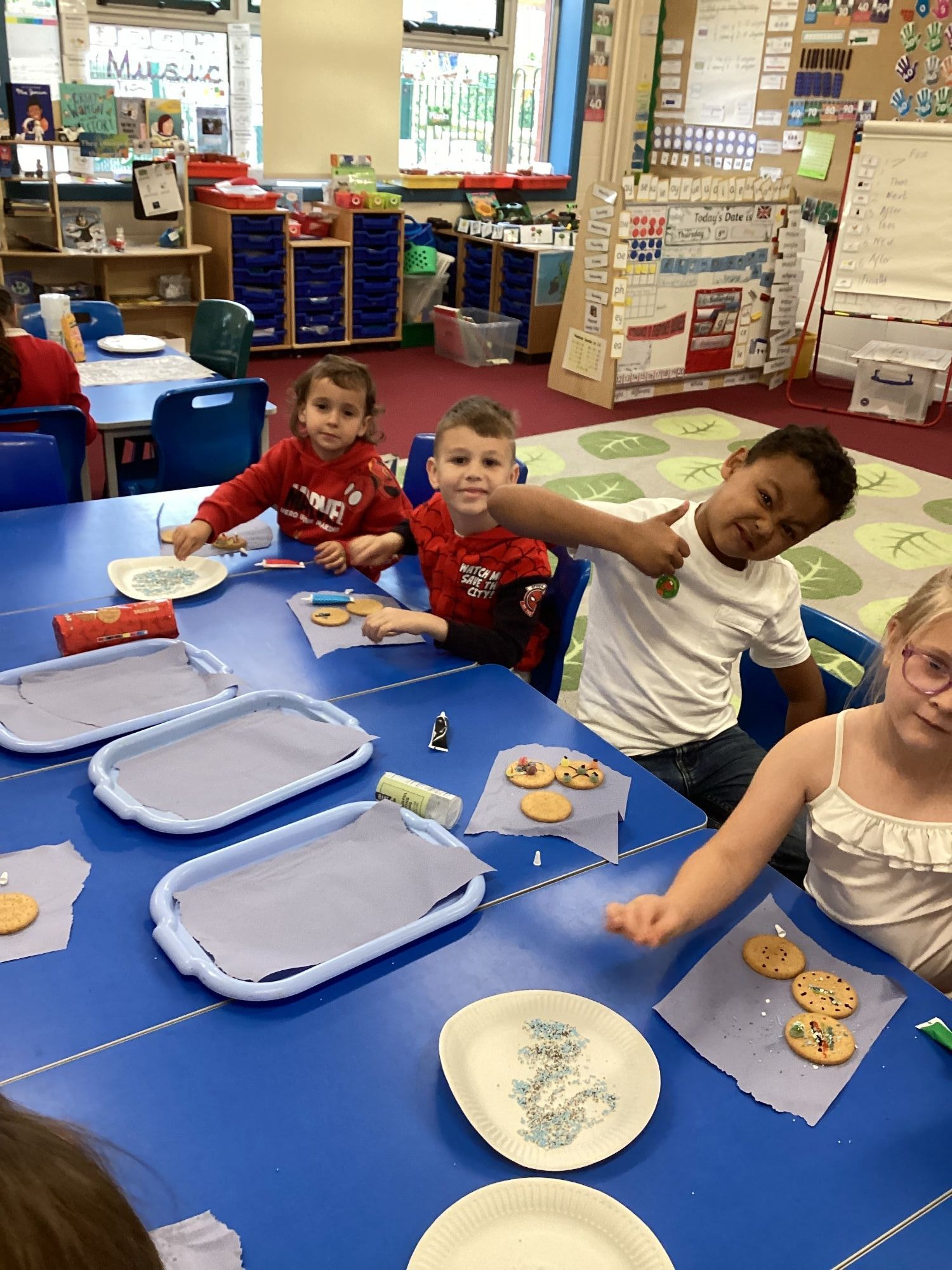 We discussed how we are all different and how it is great to be yourself. In Maths, we looked at the books Mr Wolf's Pancakes and One is a Snail and Ten is a crab and practised our counting in tens.