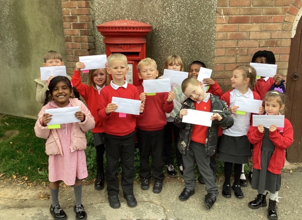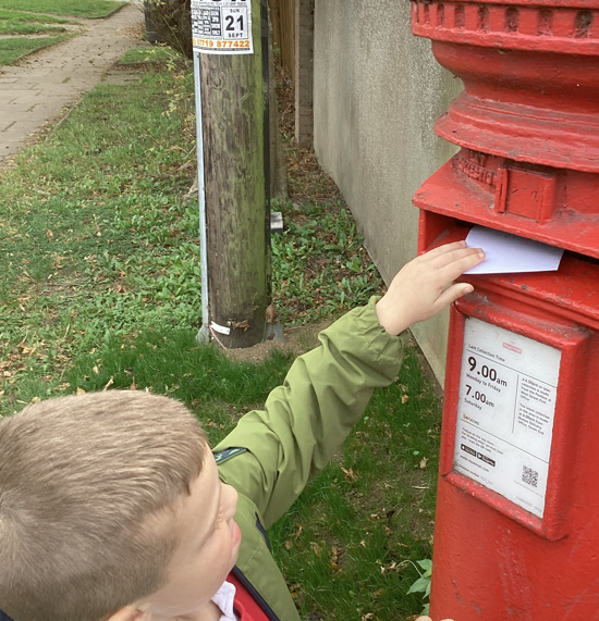 The children placed their letters into envelopes, put a stamp on them and went for a short walk to the post box!