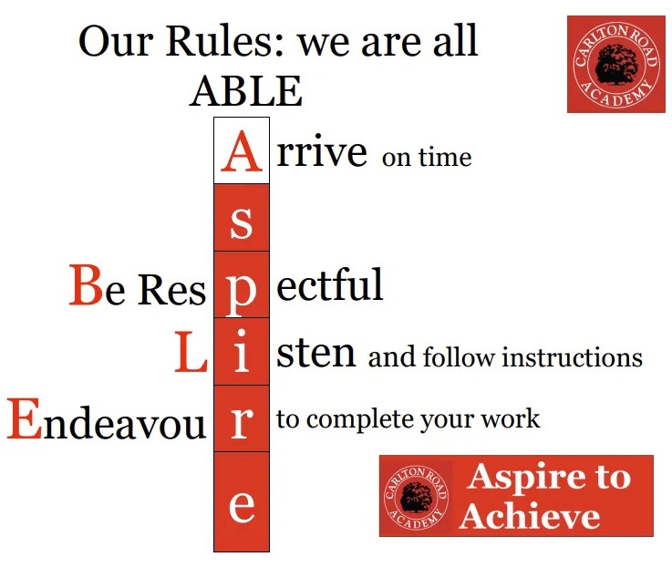 At Carlton Road our “Aspire” values run through our code of conduct and expectations of behaviour.