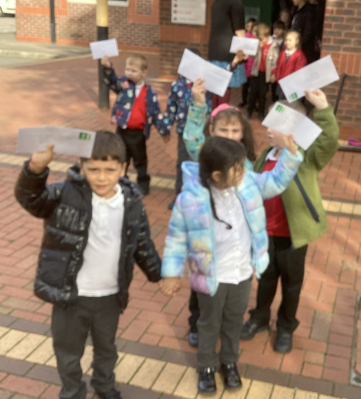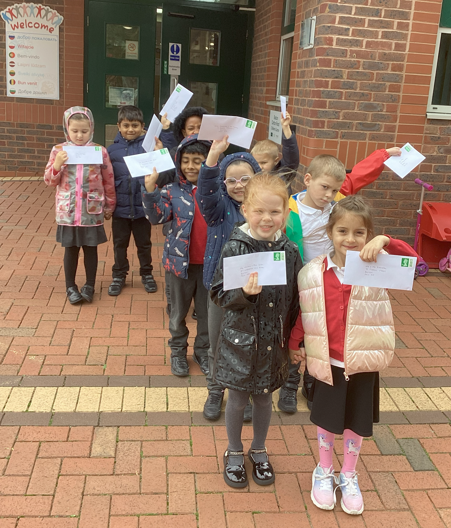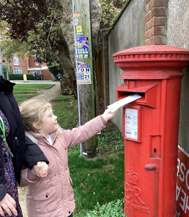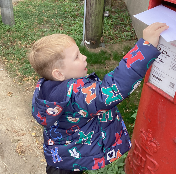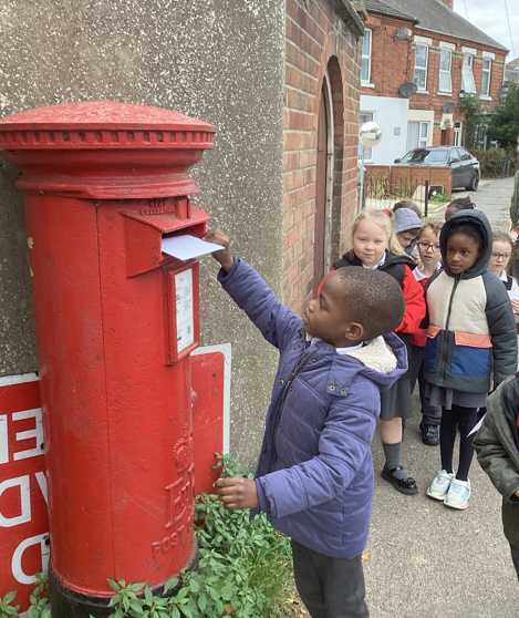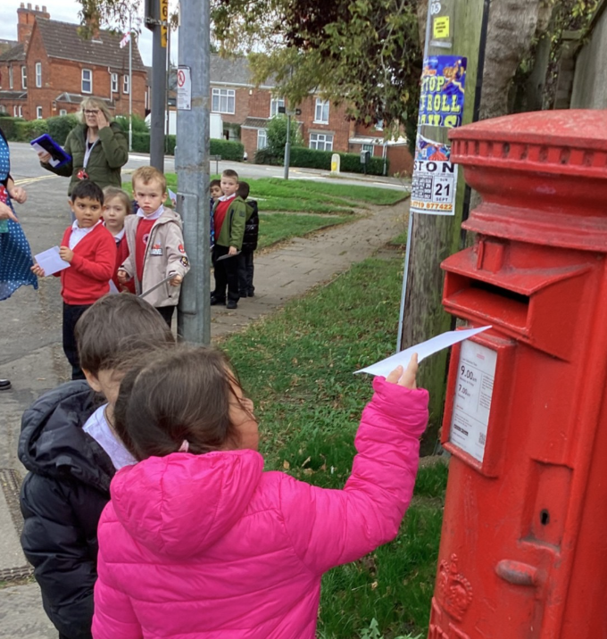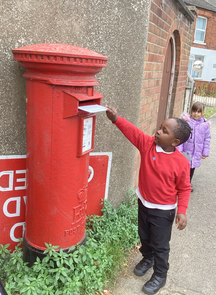 The children placed their letters into envelopes, put a stamp on them and went for a short walk to the post box!